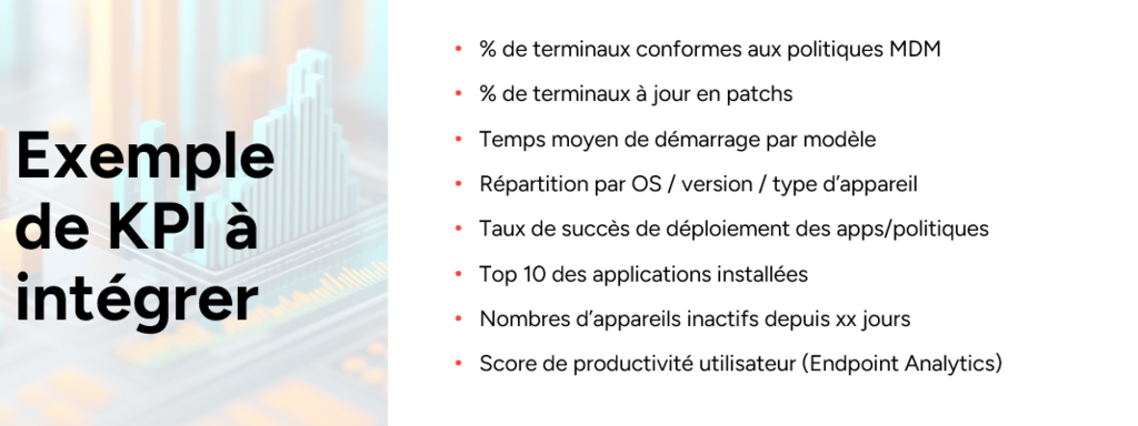 Voici quelques indicateurs pertinents pour un reporting Intune efficace :