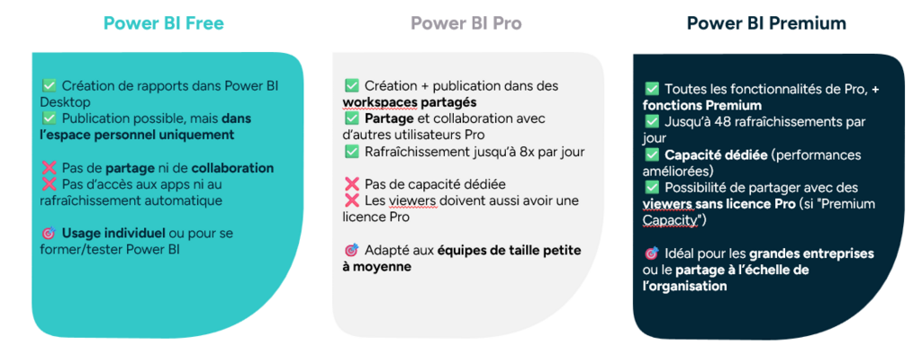 Pour terminer, un mot sur le licensing, Tu trouveras dans cette infographie le détail et les fonctionnalités par type de licence :
