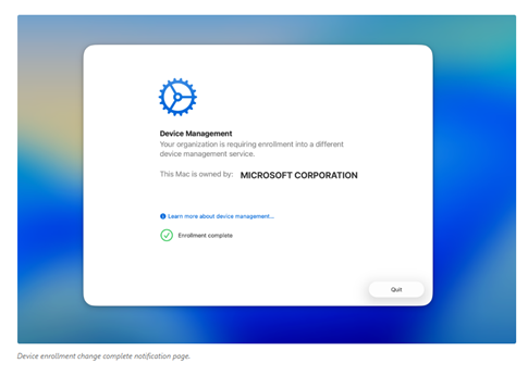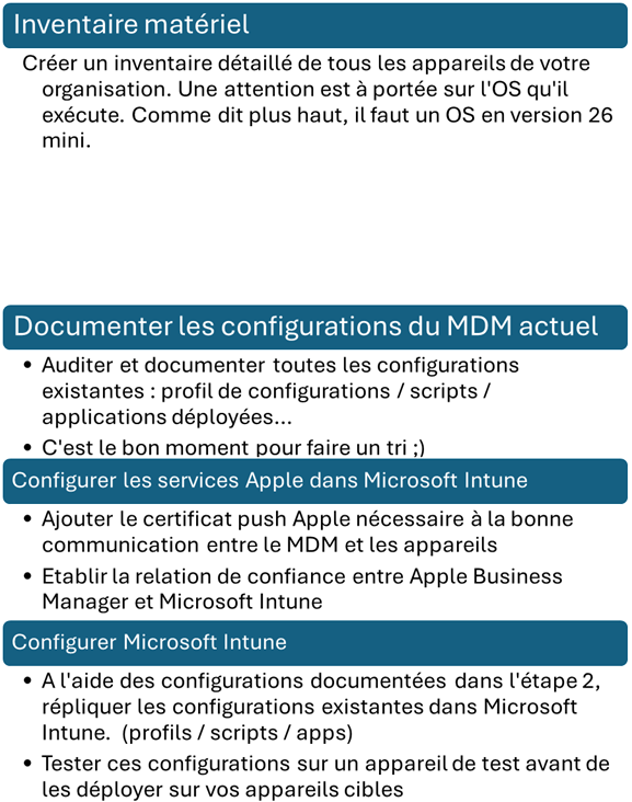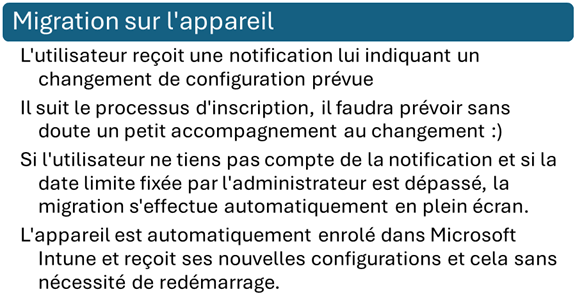 Pour MacOS, une solution manuelle à base de script existe pour les appareils ne disposant pas de cette version : shell-intune-samples/macOS/Tools/Migration at master · microsoft/shell-intune-samples · GitHub