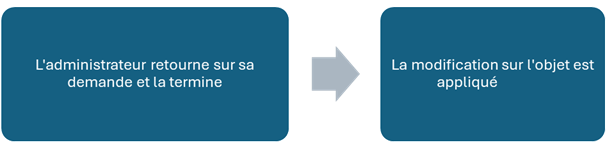 - Si une approbation est déjà en attente pour un objet donné, il ne sera pas possible de soumettre une nouvelle demande tant que la précédente n’a pas été traitée.